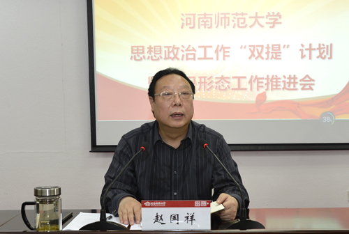 为深入贯彻习近平新时代中国特色社会主义思想和党的十九大精神,全面贯彻落实我校第十二次党代会精神,切实加强和改进我校思想政治和意识形态工作,5月25日上午,我校在勤政楼第四会议室召开思想政治工作“双提”计划暨意识形态工作推进会。校党委书记赵国祥出席会议并讲话。会议由校党委副书记陈广文主持。