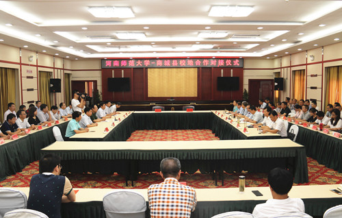 8月21日上午,我校和信阳市商城县校地对接精准脱贫启动仪式在商城县迎宾会堂举行。校党委书记赵国祥、商城县委书记李高岭出席仪式并讲话。校党委副书记、工会主席臧振春,党委常委、副校长刘玉芳和相关部门、学院负责人出席启动仪式。商城县委、县政府、县人大、县政协有关领导和当地有关部门负责同志参加了仪式。仪式由商城县委副书记曾兵主持。