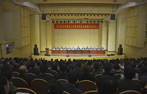 11月1日下午,我校在音乐厅举行教育部本科教学工作审核评估专家意见反馈会。评估组组长李志义、副组长张全国等专家组成员,省委高校工委副书记、省教育厅党组副书记郑邦山,校党委书记赵国祥、校长常俊标等出席会议。反馈会由张全国主持。