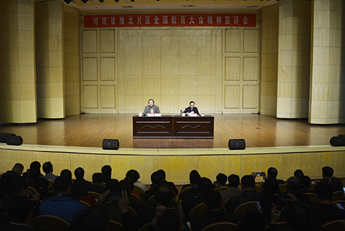 为深入学习宣传贯彻落实习近平总书记关于教育工作的重要讲话和全国教育大会主要精神,11月5日下午,豫北片区全国教育大会精神宣讲会在我校帕瓦罗蒂音乐厅举行。河南省教育厅副厅长、党组成员尹洪斌作宣讲报告。报告会由校党委书记赵国祥主持。