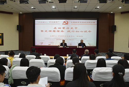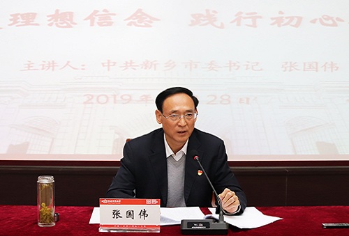 在学校“不忘初心、牢记使命”主题教育深入开展之际,10月28日下午,新乡市委书记张国伟受邀在物理北楼三楼学术报告厅为师生们讲了一堂深刻生动的思想政治理论课。报告会由校党委书记赵国祥主持。