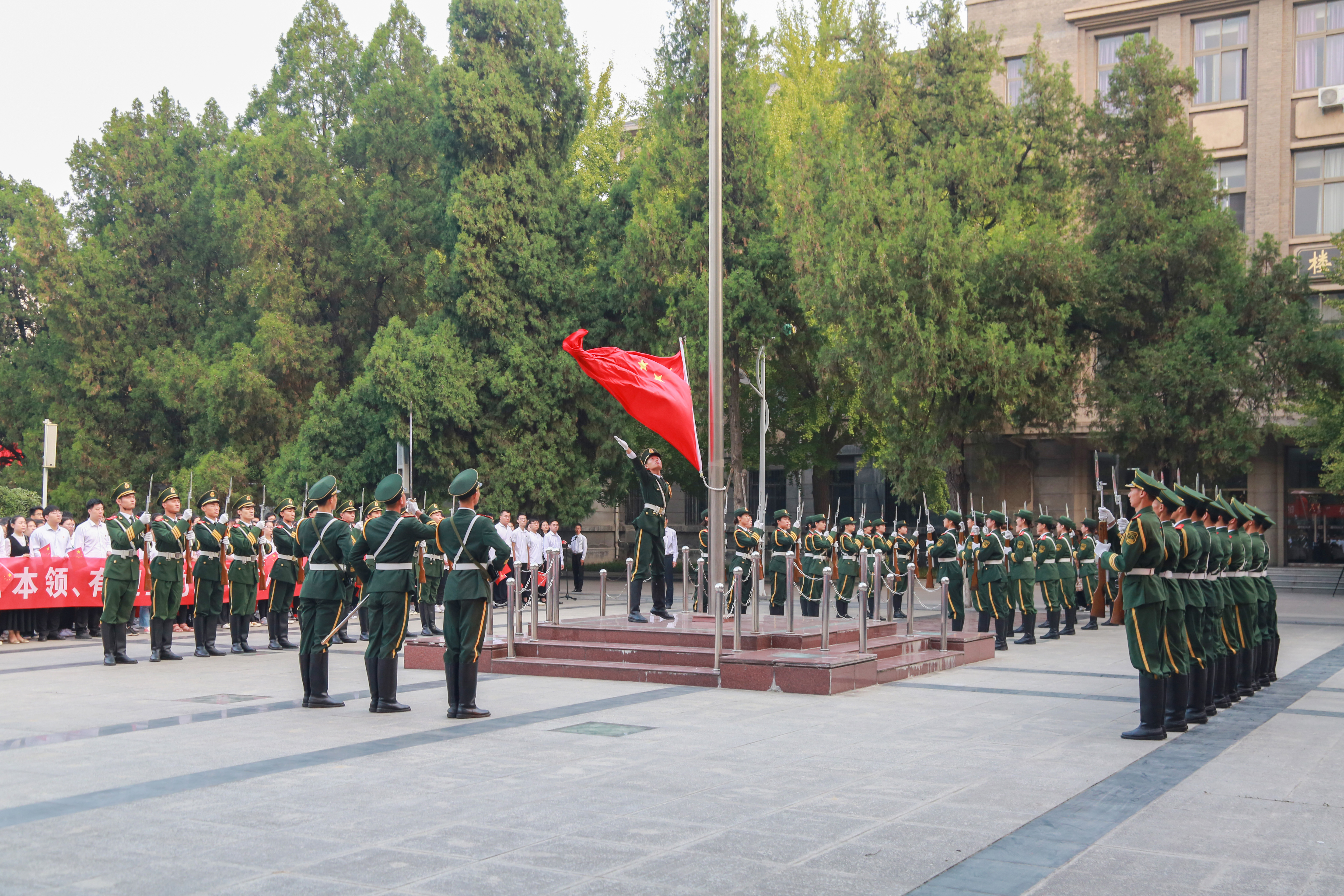 红旗飘扬庆华诞,缅怀先烈祭英魂。9月30日,烈士纪念日清晨,我校在勤政楼广场举行迎国庆升旗仪式暨“我与祖国共奋进——国旗下的演讲”特别主题团日活动。校领导赵国祥、臧振春、陈广文、李学志、李雪山、马治军、张尚字、刘玉芳出席活动。相关职能部门及学院负责人,各学院党委(总支)副书记、团委书记、辅导员以及学生代表1000余人参与活动。升旗仪式与主题团日活动分别由党委学工部部长、学生处处长王宏伟和校团委书记孙冬青主持。