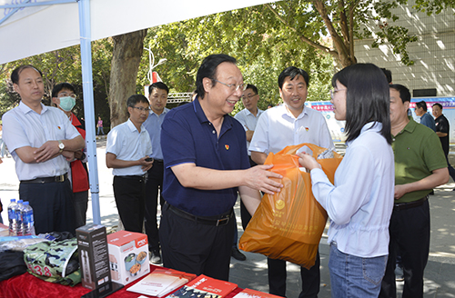 18日上午,校领导赵国祥、陈广文、梅宪宾、李学志、张尚字、刘玉芳,以及相关部门负责人深入各个迎新点视察迎新工作。
