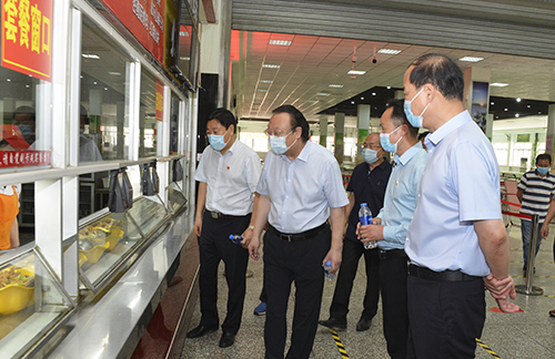 6月2日上午,校领导赵国祥、陈广文、梅宪宾、张尚字、刘玉芳一行先后走访物理学院、生命科学学院、化学化工学院和学生餐厅等地,慰问首批返校学生。