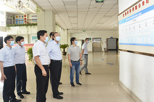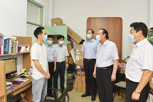 赵国祥一行在学生实验室,实地查看了同学们的学习和实验条件。赵国祥亲切询问了同学们返校后的学习和生活情况,叮嘱同学们要树信仰、立大志,坚定中国特色社会主义理想信念,努力克服新冠肺炎疫情带来的不利影响,为实现国家发展和社会进步贡献青春力量;要勤学问、重思考,不断丰富和更新自己的知识结构,提高自己的学识水平和学术涵养;要爱生活、益品行,培养高尚的生活志趣,养成良好的个人生活习惯,不断提升文明健康素养。在学生食堂,校领导一行就防疫消杀、错峰就餐、物资储备等情况进行了实地考察。