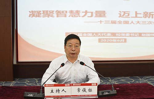 常俊标在总结发言中指出,要把学习宣传贯彻“两会”精神作为当前的一项重要任务,深刻领会习近平总书记“在危机中育新机、于变局中开新局”的重要论述;要把共同抗击疫情斗争作为推进学生思想政治教育的生动教材,深入开展爱国主义教育和总体国家安全观教育;要站稳守好意识形态前沿阵地,引导全校师生把精力集中到立德树人上来;要把工作重心集中到事业发展上来,携手推动学校各项工作再上新台阶。