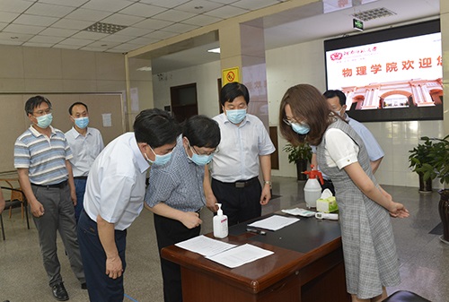 5月25日下午,疫情防控指挥部常务副指挥长陈广文、副指挥长李学志、张尚字、刘玉芳一行,到物理学院、电子与电气工程学院、化学化工学院、环境学院、生命科学学院、水产学院检查指导首批学生返校相关事宜。疫情防控指挥部办公室负责同志、6个学院的代表一起参加。