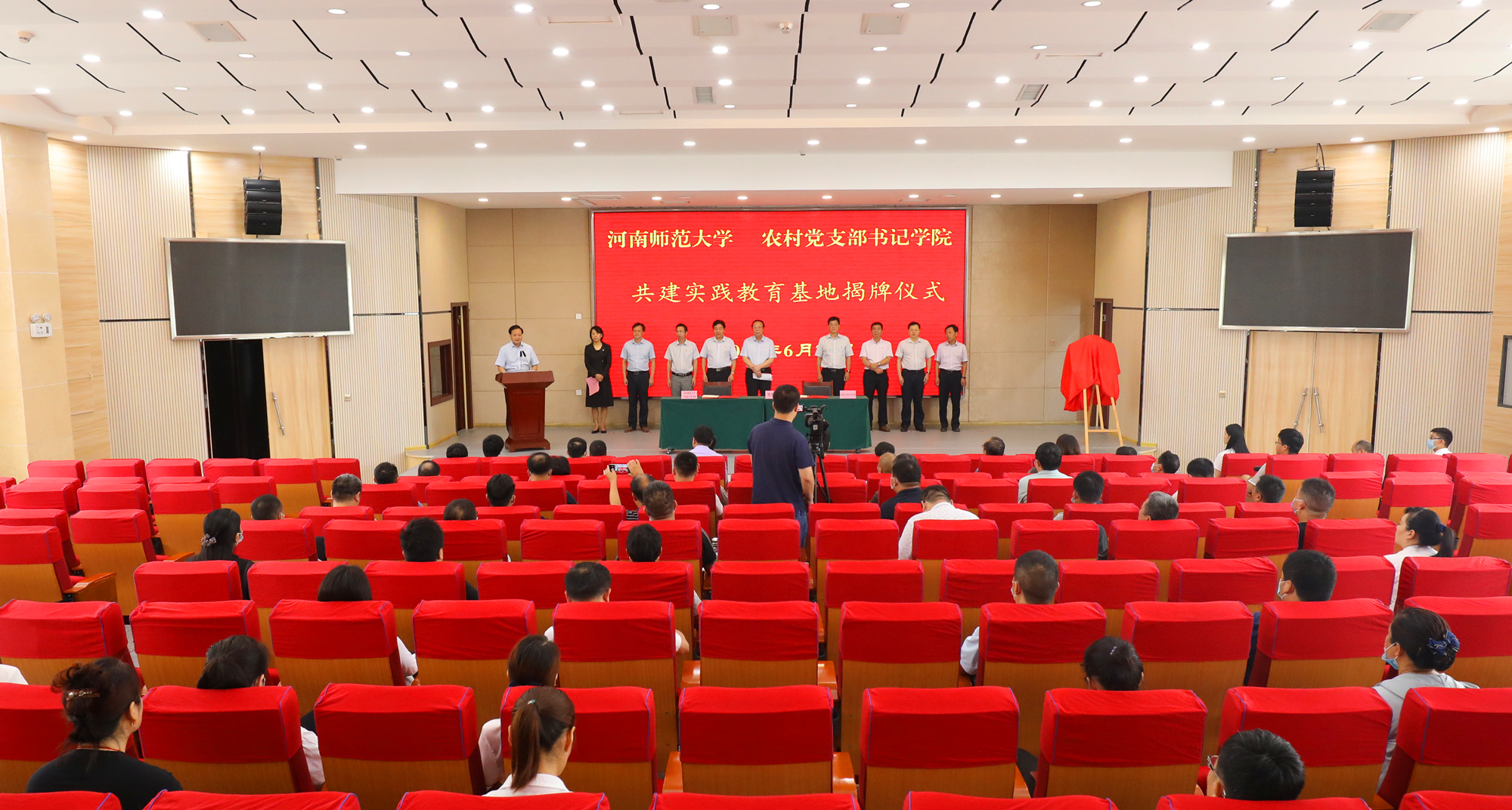 6月29日,“伟德官网下载苹果版——农村党支部书记学院实践教育基地”揭牌仪式在农村党支部书记学院举行。我校党委书记赵国祥,濮阳市人民政府副市长、濮阳县委书记、学院院长张宏义共同为实践教育基地揭牌。校党委副书记陈广文,党委组织部、党委办公室、马克思主义学院、农村党支部书记学院负责人及50余名教师参加揭牌仪式。仪式由农村党支部书记学院党委书记、常务副院长李国艳主持。