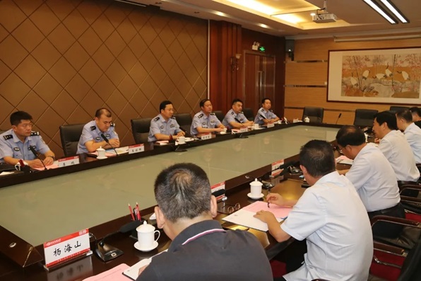 陈广文首先代表学校欢迎张万里局长带领牧野公安分局领导班子一行到学校指导和对接工作,并感谢属地公安机关对学校安全管理和综合治理工作的具体指导和大力支持。他指出,长期以来,学校与新乡市公安机关建立了良好的校警合作关系,特别是在学校加快推进“双一流”建设的过程中,驻地公安机关提供了坚强有力的保障和护航,为推动实现学校事业高质量发展创造了安全有序的发展环境。他希望在今后的工作中,校警双方要进一步加强联系和沟通,进一步增进交流与合作,进一步增进互信和团结,切实建立起信息共享机制和快速反应机制,为维护校园及周边地区安全稳定形成最大合力,全方位推动学校的平安建设工作上层次上水平。