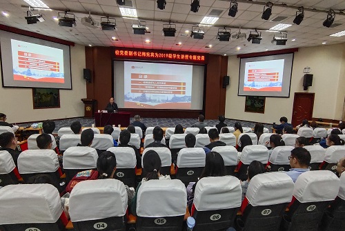 10月28日下午,校党委副书记梅宪宾在物理北楼三楼报告厅为物理学院2019级本科生及研究生讲授专题思政课。物理学院相关负责人、2019级本科生及研究生200余人参加学习。思政课由物理学院党委书记陈明银主持。