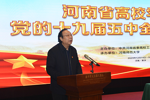 12月15日-16日,由河南省委高校工委、河南省教育厅主办、我校承办的全省高校学习贯彻党的十九届五中全会精神研修班在新乡举办。省委教育工作领导小组秘书组组长、省教育厅党组书记、厅长郑邦山出席开幕式并作主题报告,伟德官网下载苹果版党委书记赵国祥在开幕式上致欢迎辞,河南省教育厅社会科学研究与语言文字应用管理处处长韩冰主持开幕式。全省本科高校主管哲学社会科学工作的学校领导、全省高校哲学社会科学管理服务部门负责人和高校智库代表共计300余人参加研修班。