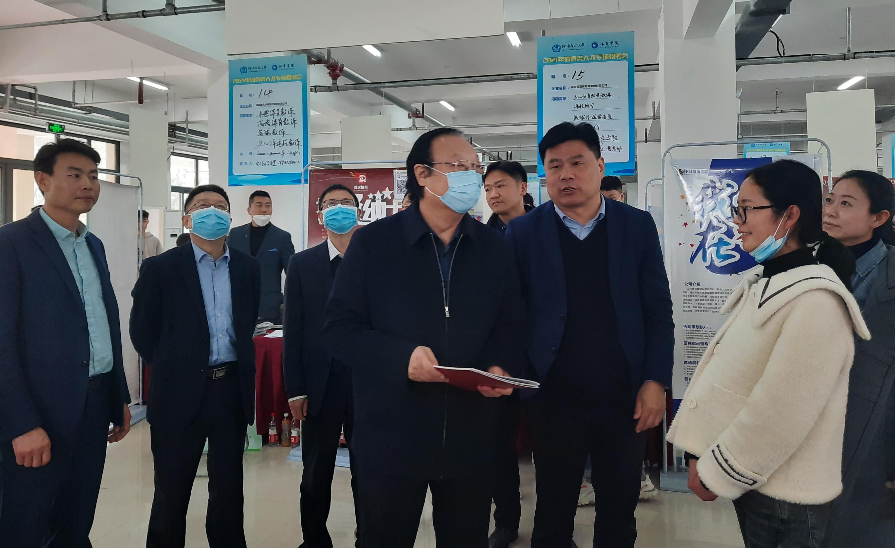为更好地拓宽毕业生的就业渠道,积极搭建学生与用人单位的交流平台,3月25日上午,伟德官网下载苹果版2021年体育类人才专场招聘会在致远楼举行,校党委书记赵国祥,党委常委、副校长马治军,党委常委、纪委书记、监察专员张尚字赴招聘会现场指导工作,就业创业指导服务中心、体育学院负责人全程参与,400余名2021届本科、硕士毕业生参加了本次招聘会。