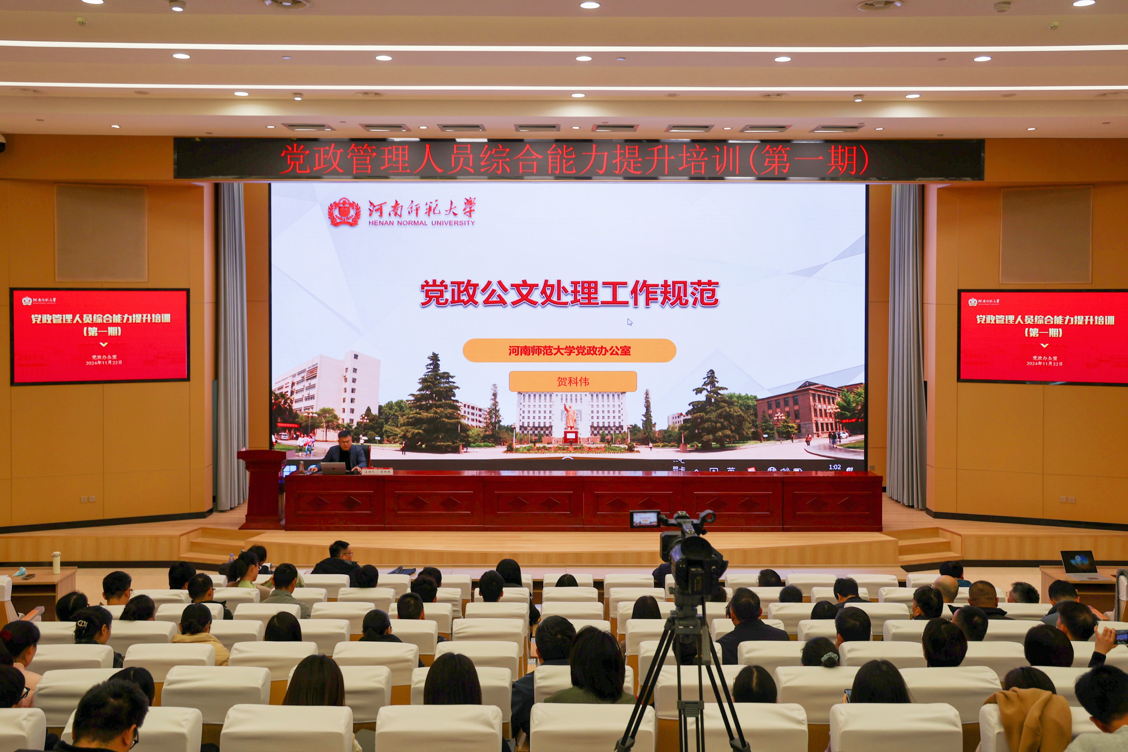 为提升学校党政管理人员履职能力和业务水平,11月22日下午,党政管理人员综合能力提升培训第一期——党政公文处理与写作专题培训在实训楼5楼东报告厅举行。校内各单位相关处、科级干部近200人参加。