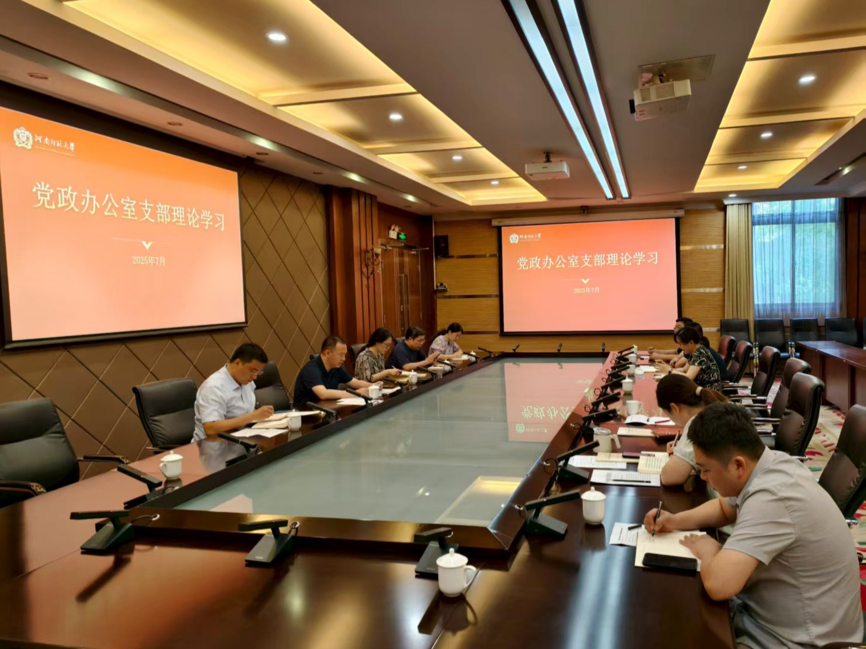 7月14日,党政办公室党支部在勤政楼第三会议室组织召开政治理论学习暨深入贯彻中央八项规定精神学习教育专题研讨会。会议由支部书记王宁主持,全体党员参加。