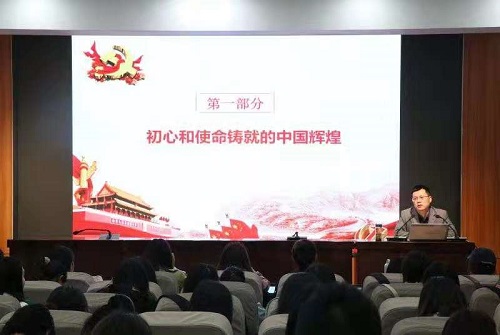 专题讲座以学习党史新中国史为主题,以初心和使命为主线,从铸就中国辉煌、感悟初心和使命、如何践行好初心使命三个方面展开,党课旨在带领与会人员感受如今中国的辉煌成就,解读辉煌成就,在党史新中国史中感悟党的初心和使命,深刻认识红色政权来之不易、新中国来之不易、中国特色社会主义来之不易,激发自己更好地践行初心和使命,传承好红色基因、担当好时代重任,积极为党旗增光添彩。学部党委书记陈勇强调,要通过学习党史新中国史深刻领会共产党员的初心和使命,学出坚强党性、学出信仰担当、学出智慧力量。