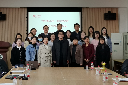 4月24日上午,政治与公共管理学院在学院办公楼413室举行“中小学思想政治课程改革”研讨会暨“大手拉小手,同心感党恩”党史学习活动启动仪式。新乡市第七中学副校长魏铭玲,新区小学副校长赵雁,育才小学副校长李新年,陵园小学副校长张利萍,金穗大道小学教导主任原伟静,学院院长李洪河,学科教学(思政)学位点负责人杜灵来及工作秘书刘强,部分研究生代表参加会议。本次会议由学院副院长韩万渠主持。