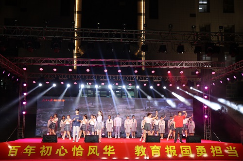 当日晚,教育文化节专业成果汇演暨学生工作表彰大会在图书馆前广场隆重举行。本次成果汇演紧紧围绕“百年初心恰风华 教育报国勇担当”主题,依据党的百年奋斗历程分为初心启航、初心不渝、初心奋进、初心再出发四个篇章展开,通过丰富多彩的节目展现学部学子的青春风采,唱响爱党爱国主旋律。其中,舞台剧《烈火中永生》缅怀革命先烈,致敬视死如归的革命献身主义精神;歌曲《唱支山歌给党听》表达了对党深切的爱和坚定不移跟党走的信念;音乐情景剧串烧歌颂改革开放以来党领导人民取得的伟大历史成就;歌伴舞《少年》抒发学部学子在党的百年历史中汲取前进的力量,怀揣青春梦想、奋斗圆梦再出发的青春誓言。颁奖环节对学部抗疫优秀青年代表、创新创业大赛、教学技能大赛、各项文体活动比赛获奖代表等优秀学子进行表彰。这场有深度、有温度的红色文化盛宴在全场大合唱《没有共产党就没有新中国》中落下帷幕。