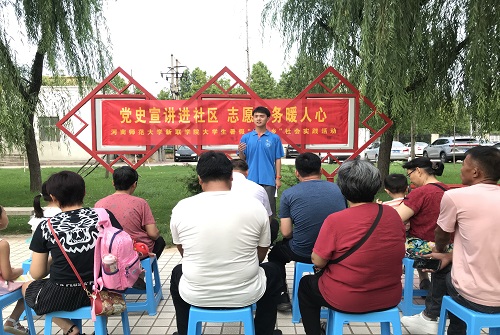 自学校大学生暑期“三下乡”社会实践活动启动以来,由新联学院国旗护卫队14名青年团员组成的“百年党史青年说”党史学习实践团在指导老师周俊燕的带领下,上讲台、进社区、下村镇、返家乡开展党史知识宣讲活动。为实施好活动方案,团队明确了“党的基本知识”“党史的重要会议”“发生在河南的党史故事”“河南的革命英雄人物事迹”等四个宣讲主题,制作彩印了《党史知识宣传页》,联系了牧野区师大家属院、绿营花园、人民公园、卫辉唐庄镇等社区、园区和乡镇,规划了每日宣讲行程,部署了实践活动的任务分工。
