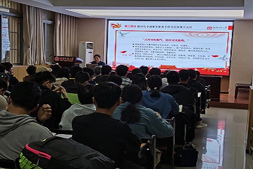 10月22日晚,校党委常委、纪委书记、监察专员张尚字教授在文昌楼127教室为计算机与信息工程学院2021级新生讲授“开学第一课”。学院相关负责人及2021级全体新生400余人参加了本次活动。