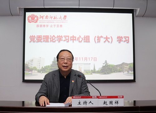 1117日,我校在勤政楼第四会议室举行党委理论学习中心组(扩大)学习。教育部高等学校社会科学发展研究中心主任王炳林受邀通过腾讯会议平台作党的十九届六中全会精神线上专题报告。报告会由校党委书记赵国祥主持,校党委理论学习中心组成员、处级以上干部听取了报告。