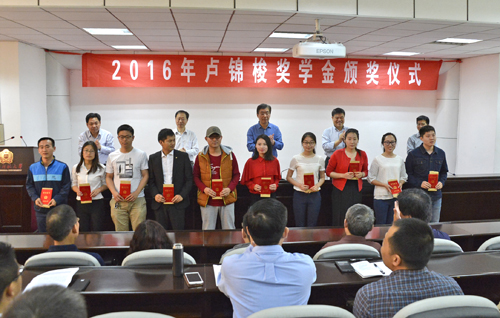 “卢锦梭奖学金”基金会负责人卓克垒介绍了“卢锦梭奖学金”的设立情况、卢锦梭教授生平事迹以及魏冬青教授的学术成就。党委研工部部长杜晓田宣读了2016年“卢锦梭奖学金”获得者名单。与会领导向5名博士研究生和20名硕士研究生颁发了荣誉证书和奖金。生命科学学院博士研究生马军国代表获奖学生发言。