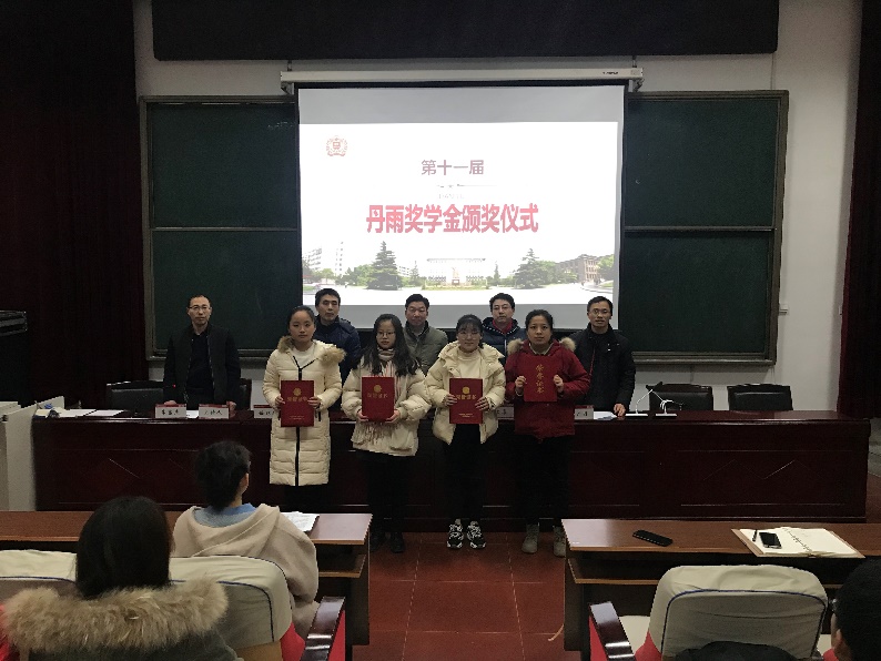 会上,副院长黄广月宣读了“丹雨奖学金”评选办法和获奖学生名单。与会领导老师为获奖学生颁发证书并合影留念。获奖学生代表秦美红发言,表达了对谷永春校友及学院的感激之情,并表示在今后的学习生活中会一直保持本心,不断努力,用更加优异的成绩来回报学校和社会。学院党委书记刘文安向获奖同学表示祝贺,鼓励他们再接再厉,再创佳绩,同时向谷永春先生长期以来关心学院人才培养、无私奉献的高尚精神表示衷心的感谢。