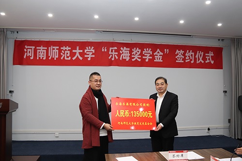签约仪式上,学校教育发展基金会和乐海乐器有限公司代表共同签署了“乐海奖学金”捐赠协议书,岳杰勇代表学校接受乐海乐器有限公司捐赠,并颁发捐赠证书。