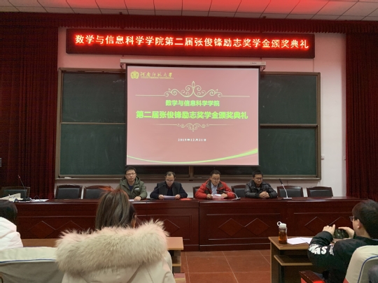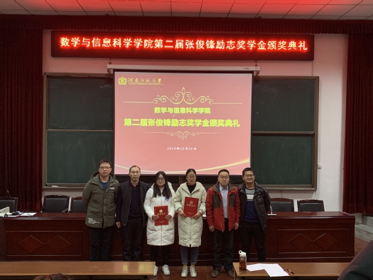 12月31日下午,第二届张俊锋励志奖学金颁奖典礼在数学与信息科学学院多功能报告厅举行。学院相关负责人,获奖学生及研究生代表共30余人参会。