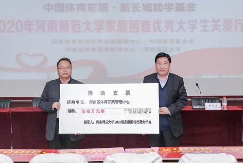 本次捐助是河南省体育彩票管理中心对我校家庭经济困难学生的第四次捐助,共有120名2020级学生得到“中国体育彩票·新长城助学基金”,每名学生5000元。
