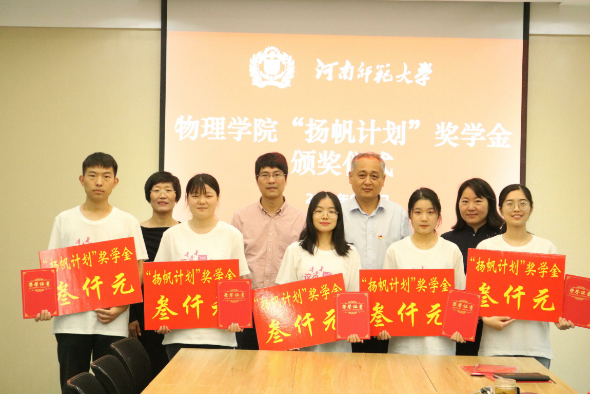 求学师大难忘培育之恩;感恩母校助力学子扬帆。6月9日上午,物理学院在物理北楼会议室举行物理1998级校友“扬帆计划”奖学金颁奖仪式。“扬帆计划”委员会代表王卫超、马春旺、王海英,物理学院党委书记陈明银,副书记赵旭,毕业班辅导员王丹云,2017级获奖学生,各年级学生代表共同参加本次颁奖典礼。仪式由物理学院党委副书记赵旭主持。