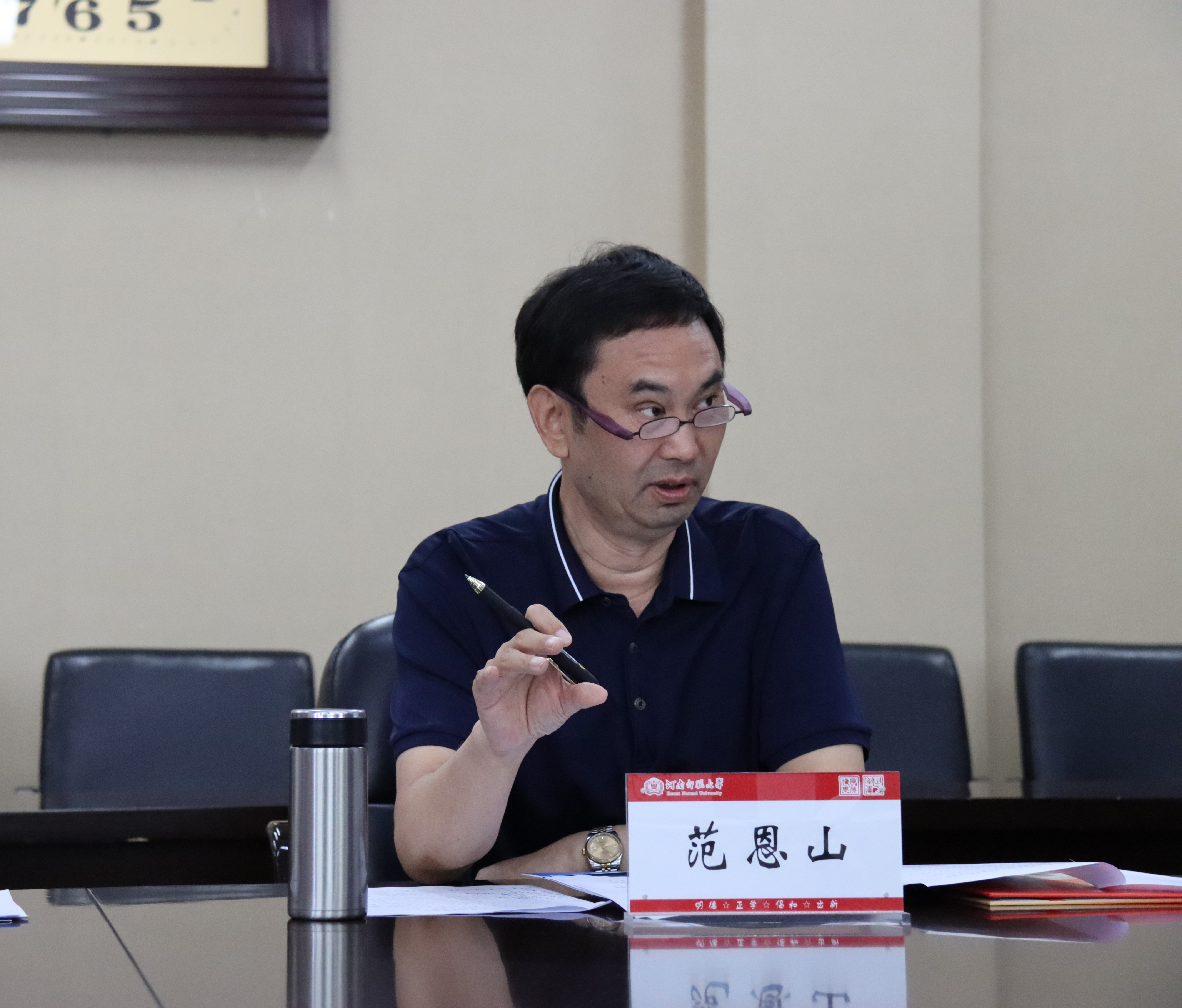 7月8日上午,我校2021年基金工作会议暨教育发展基金会理事、监事聘任仪式在勤政楼第二会议室举行,校长常俊标,党委常委、副校长马治军,校友代表、河南省恩大投资集团有限公司董事长范恩山,以及校教育发展基金会理事、监事出席会议。会议由校友与基金工作办公室主任孟超主持。