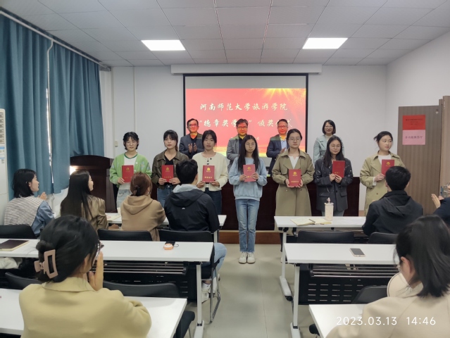 仪式伊始,刘英基宣读2021-2022年度德章奖学金获奖名单。随后,苏现伐发表讲话,向学生提出四点要求:立志做奋斗师大人,争做感恩师大人,勇做求是师大人,力做爱国师大人。他指出,奋斗是青春的底色,要把对美好事物的追求化作不懈奋斗的动力,把不断学习当作一生的习惯,把奉献自我化作内心的执着。与会领导为获奖学生颁发荣誉证书。学生代表2021级罗紫嫣同学发言。最后,冯峰对获奖学生提出三点希望:一要坚定信念,做有理想、有抱负的时代青年;二要勤奋学习,做有知识、有才干的时代青年;三要修身明德,做有品德、有魅力的时代青年。他鼓励同学们树立专业自信,坚持知行合一,培育良好品格,不断完善自我。