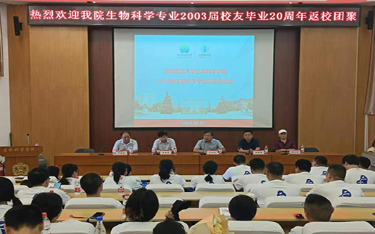 为促进同学之间交流,为学院百年华诞庆祝,7月22日,生命科学学院2003届生物科学专业毕业二十年返校聚会座谈会在生物报告厅举办。发展规划处处长、校友与基金工作办公室、生命科学学院相关负责人,任课教师代表牛红星老师,姬生栋老师以及50余名校友参加此次座谈会。座谈会由2003届校友于倩主持。