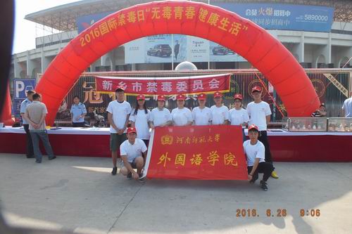 打击毒品犯罪,捍卫生命尊严。6月26日上午,为响应国际禁毒日的号召,新乡市禁毒委员会在新乡市体育中心举办以“无毒青春,健康生活”为主题的2016禁毒开展暨禁毒宣传动员大会。新乡市政法委书记,新乡市犯罪侦查支队政委,新乡市禁毒委员会主任,新乡市禁毒志愿者总队队长等领导一一出席,积极参与本场大会的还有新乡市禁毒委员会各成员单位。其中,伟德官网下载苹果版外国语学院十余名学生代表以禁毒志愿者的身份参与此次活动。