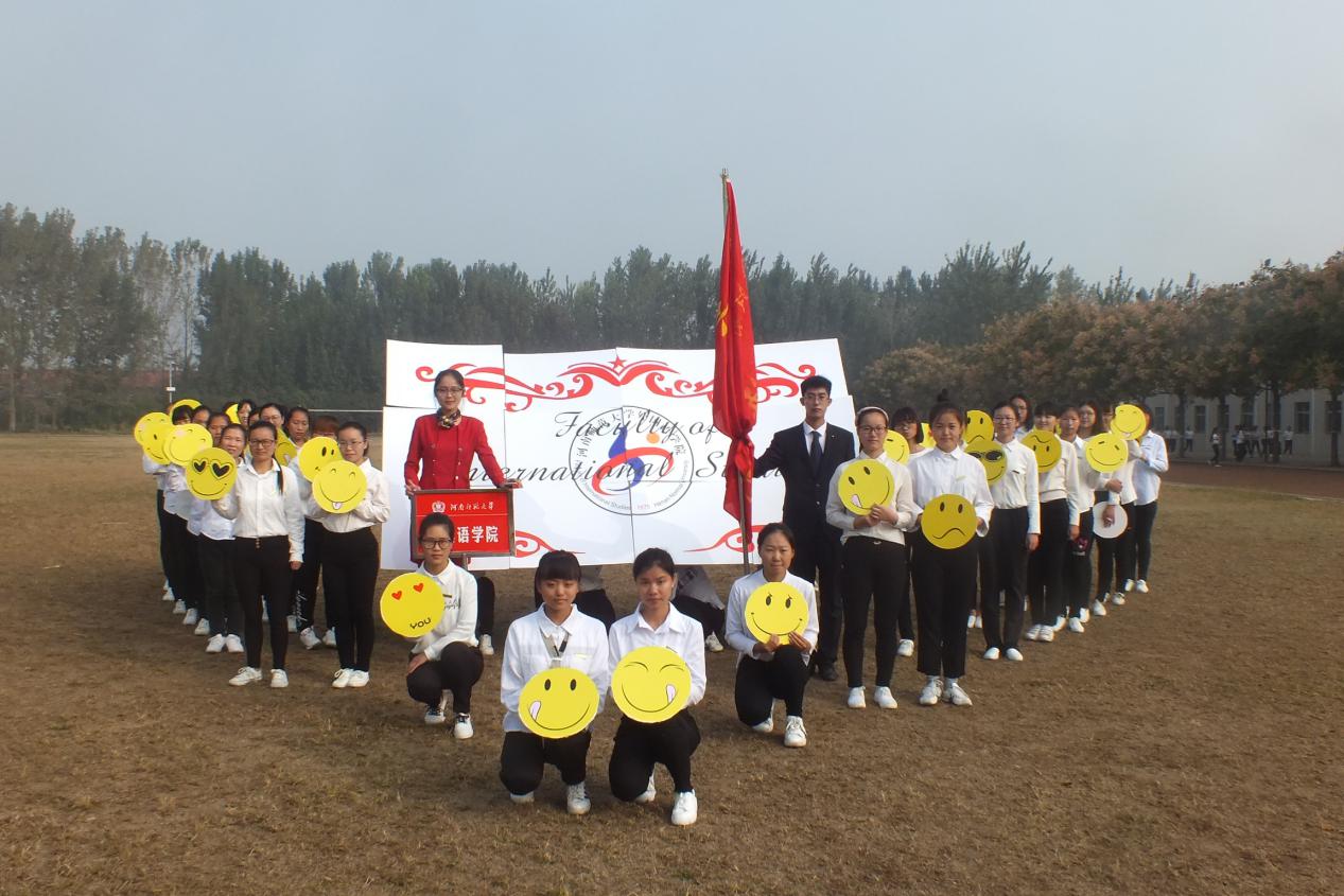 勿忘初心秀健儿英姿,壹陆高歌扬外院风貌。10月19日上午,我校第五十五届运动会开幕式在西区塑胶田径场如期举行。外国语学院以第一方队出现在观众的视野之中,“奋力拼搏,斗志昂扬;蓬勃外院,展露辉煌”的嘹亮口号震撼全场,精神饱满,意气风发,展现了我院师生积极向上、踏实进取的精神风貌。在行进过程中,以“放飞心形红色气球,展望明天美好生活”的形式为全体健儿、在校师生翻开全新的一页。50名学生代表作为彩旗护卫队迈着整齐划一的步伐,驶向主席台。运动员代表2014级牛童代表全体参赛运动员发言。向大家郑重承诺一定遵守比赛规则,听从指挥;坚持“友谊第一,比赛第二”的体育风尚,赛出成绩,赛出水平。