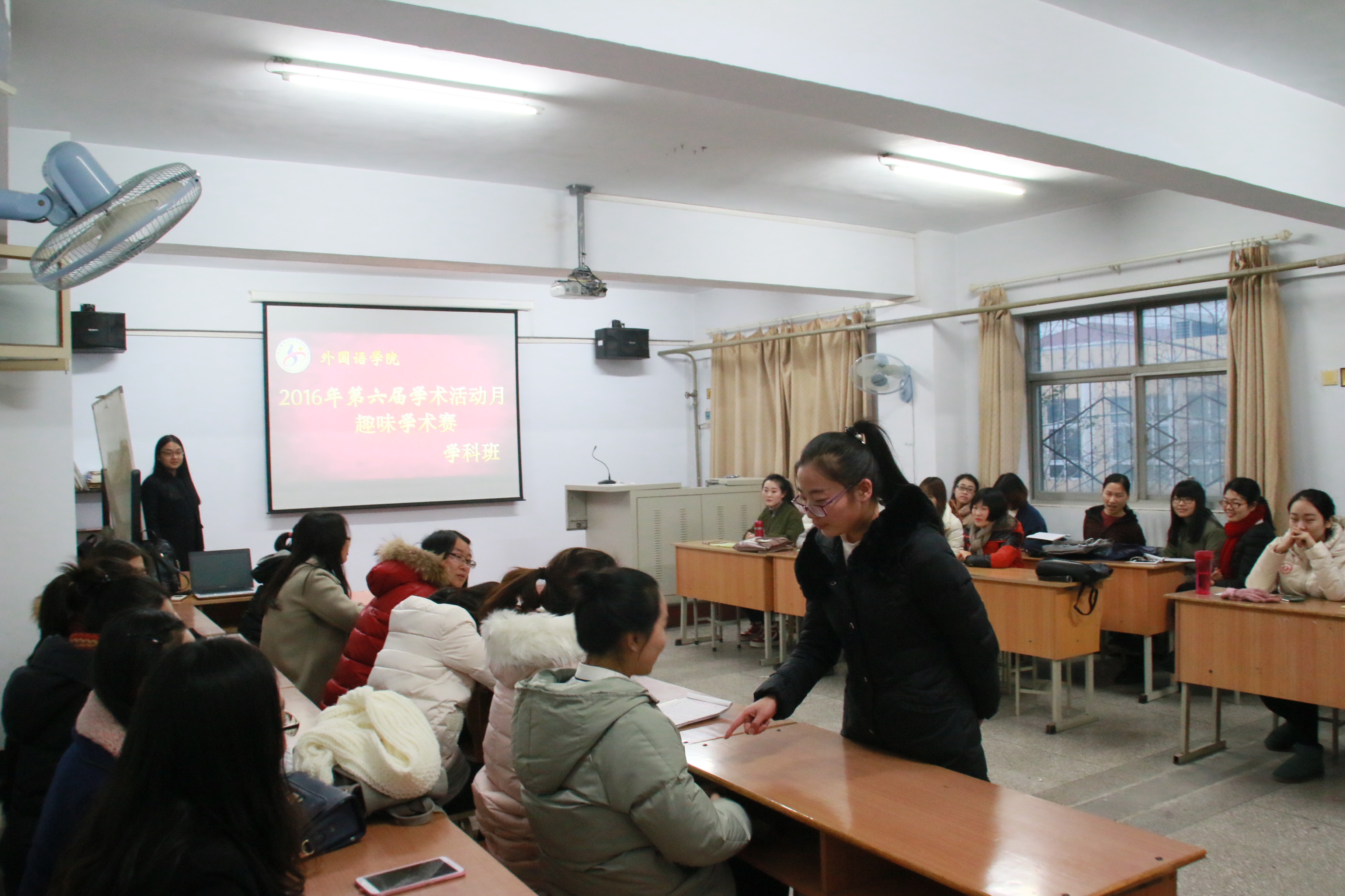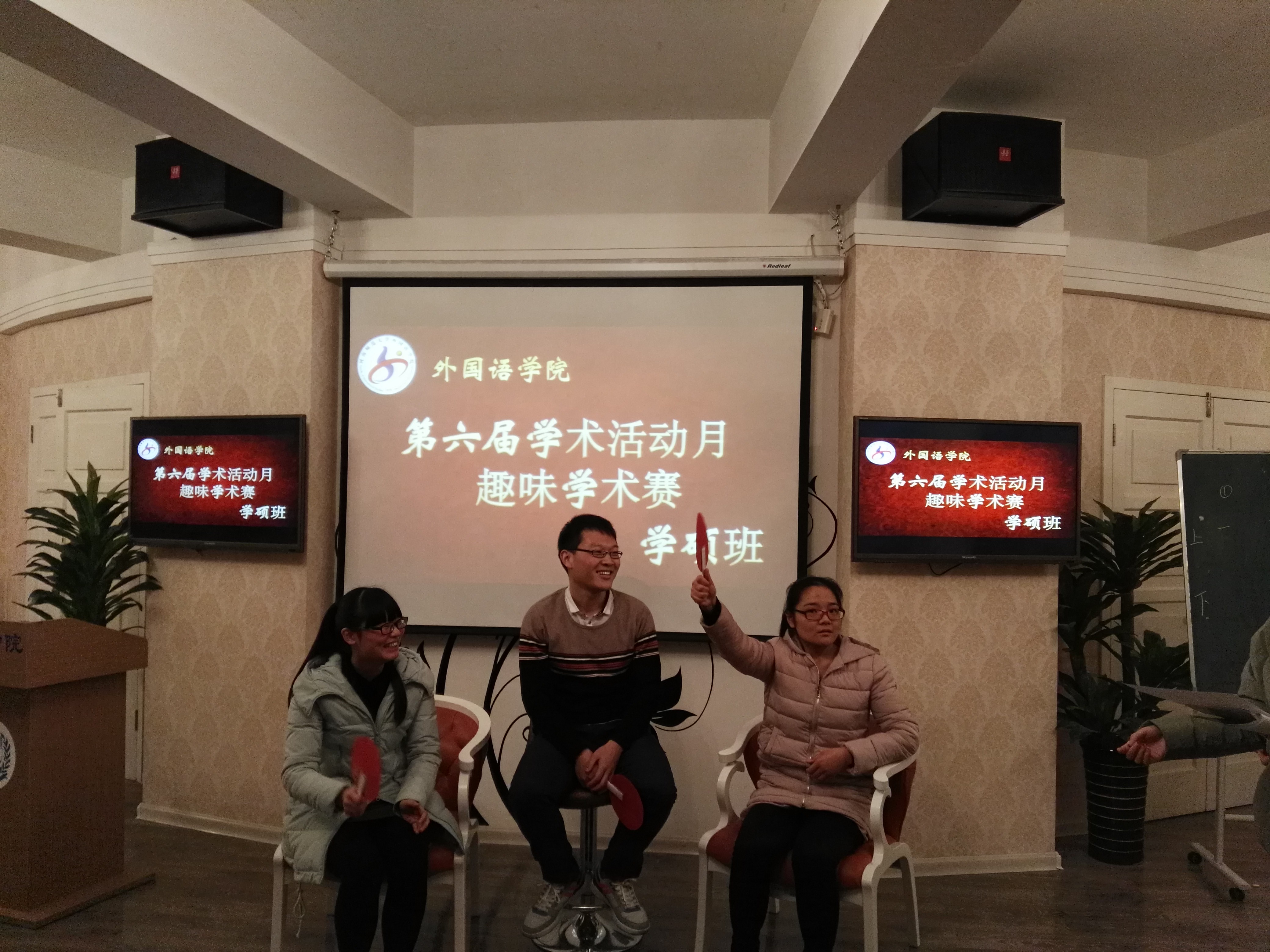 为响应研究生院“第六届学术活动月”,我院于2016年11月21日-11月24日期间开展了趣味学术赛活动。研究生学硕班、翻硕班、教硕班分别在外国语学院五楼会议室、国培教室和多媒体二教室,依次举行了比赛。