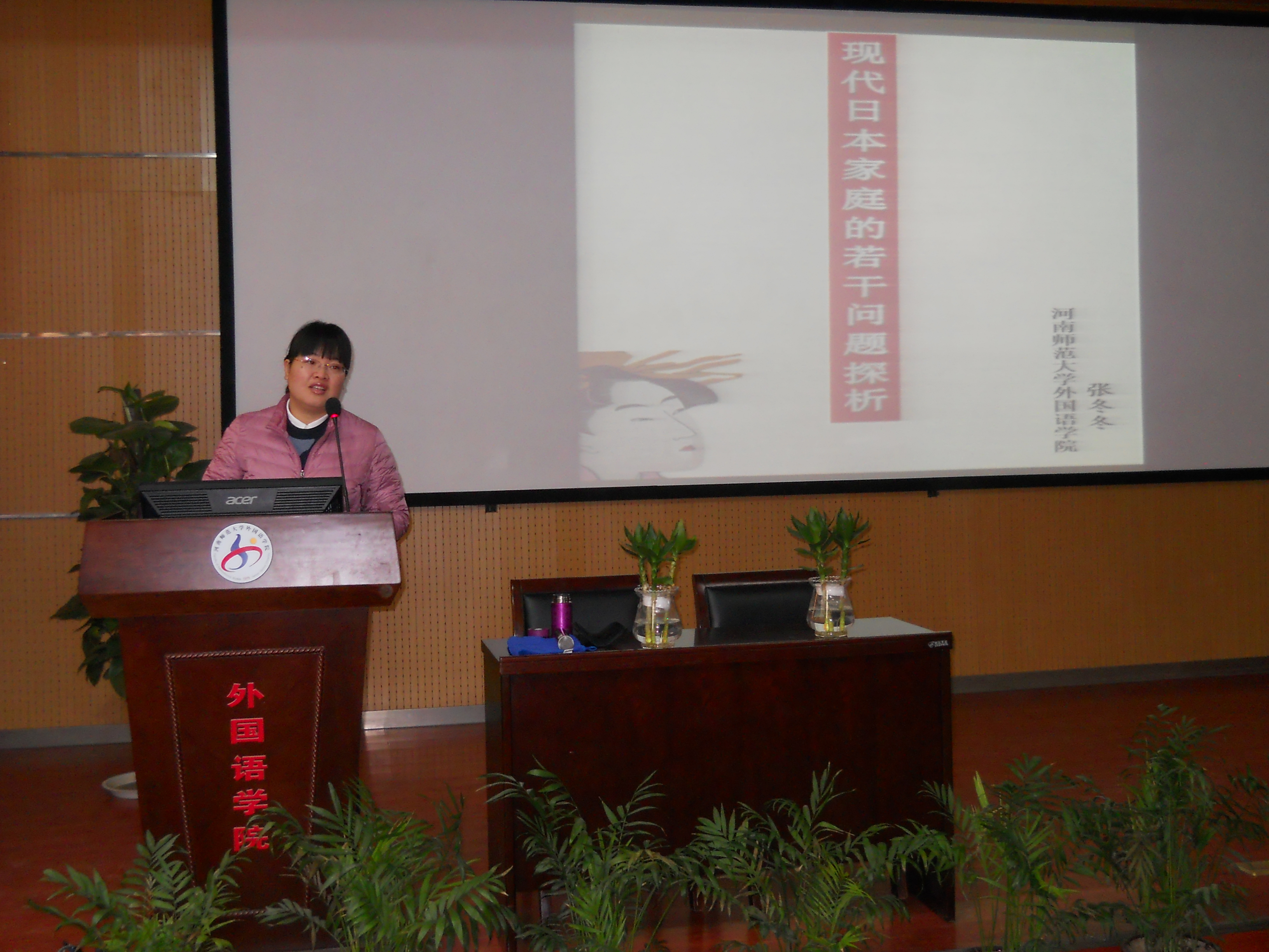 11月25日,张冬冬副教授在外国语学院学术报告厅作了题为“现代日本女性婚姻家庭若干问题”的讲座。外国语学院相关专业教师、研究生、本科生共百余人聆听了讲座。讲座由外国语学院肖俊林老师主持。