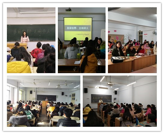 为进一步落实社会主义核心价值观,宣传文明举止与出行,引导学生培养文明得体的行为习惯,营造文明、和谐的校园文化氛围,外国语学院本科生和研究生各年级各班分别开展了“美丽牧野,文明师大”系列主题班会,让文明之风气走进每一位师生中。