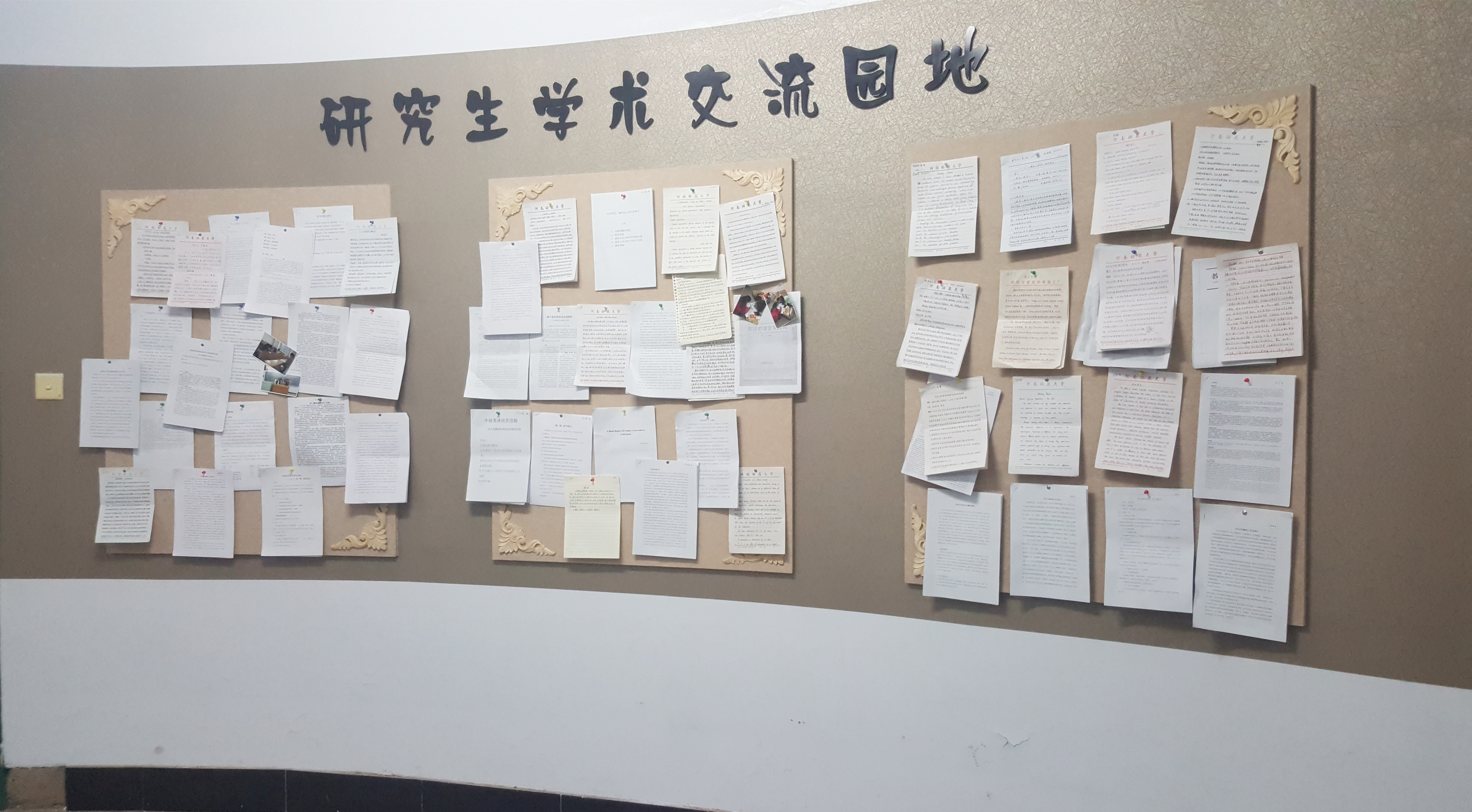 为加强我院研究生学术交流氛围,在学院领导的大力支持下,外国语学院研究生学术交流园地于12月1日正式启用。该园地位于外国语学院四楼大厅,倡导自由、开放、交流、创新,主要面向学院全体研究生导师及研究生。