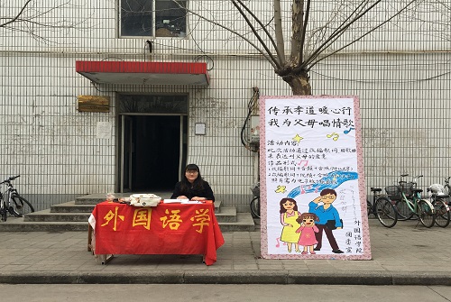 为培育和践行社会主义核心价值观,大力弘扬孝文化,外国语学院团委于3月23日至4月1日举办为期一周的“传承孝道暖心行,我为父母唱情歌”活动,全校学生积极参与。