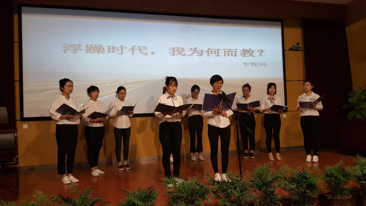 阵容强大的合唱串烧《大幸运》拉开了整场晚会的序幕,舞蹈《中国功夫扇》展现了巾帼不让须眉的气概,话剧《三生三世之总监驾到》以诙谐幽默的语言对白展现出丰富多彩的生活气息,赢得台下观众阵阵掌声,朗诵《浮躁时代,我为何而教?》体现了我院学子为求上进的积极心态与良好的文化素养。动听的歌声,飞扬的裙裾,爆笑的话剧,激情的朗诵无不洋溢着青春的气息。