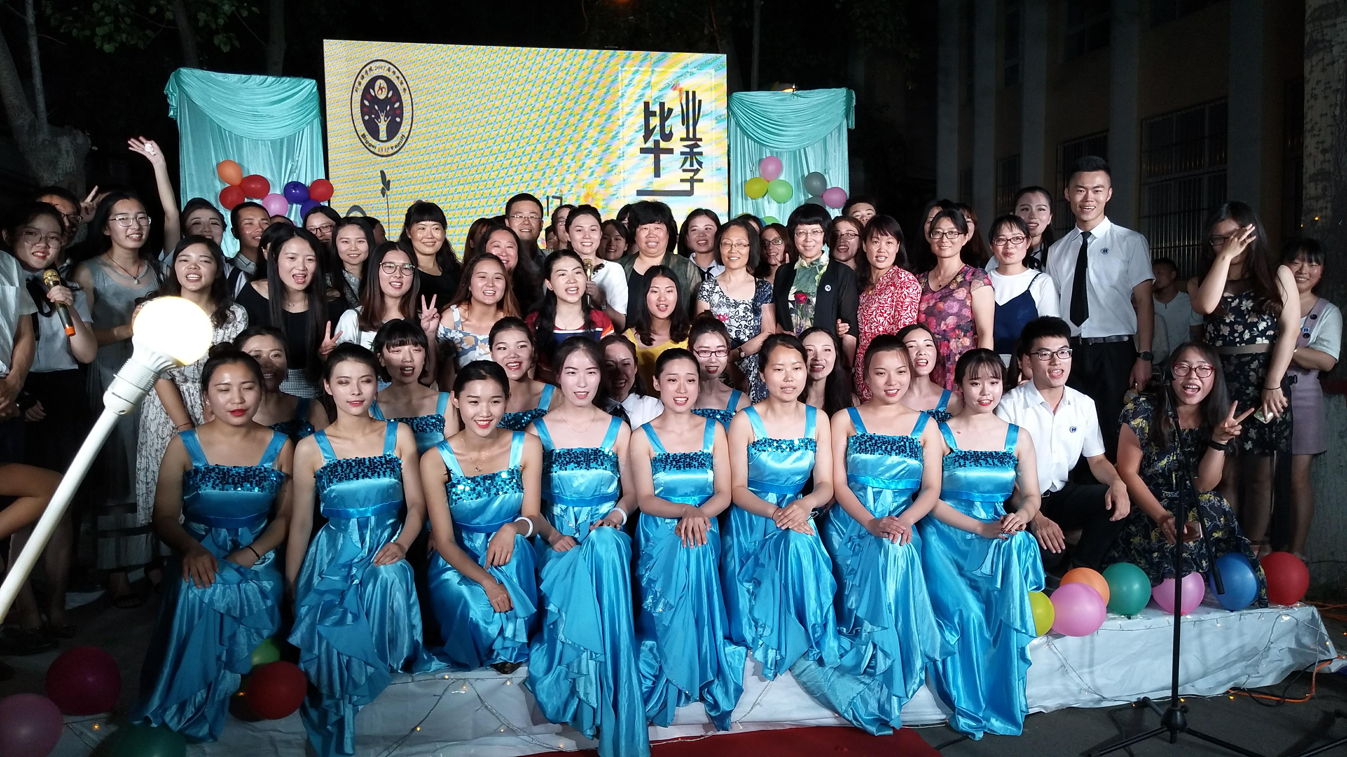 舞台上,同学们精心准备的节目轮番上演。相声《外院这四年》结合同学们耳熟能详的经典桥段再现了大学四年中的逸闻趣事;舞蹈《成长的记忆》充分表达了学生们对老师的恩情,对校园生活充满快乐;诗配乐《最后一课》与老师们共同演绎,回忆课堂,流露真情;团委学生会成员的《不说再见》也表达了对学长学姐的祝福。一个个原创真实的节目、一段段精心录制的视频,一首首经典校园歌谣的再现,诉说着大学四年的欢乐与悲伤,陪伴与成长,不舍与祝福。在视频里,老师们的祝福寄语,给毕业生留下深刻的印象,大家热泪盈眶。最后,全场师生共同分享了毕业生日蛋糕,温馨、不舍、感动与祝愿相互交融, 毕业生们久久不愿离去,享受着他们在师大校园最后一次的欢聚和放歌。