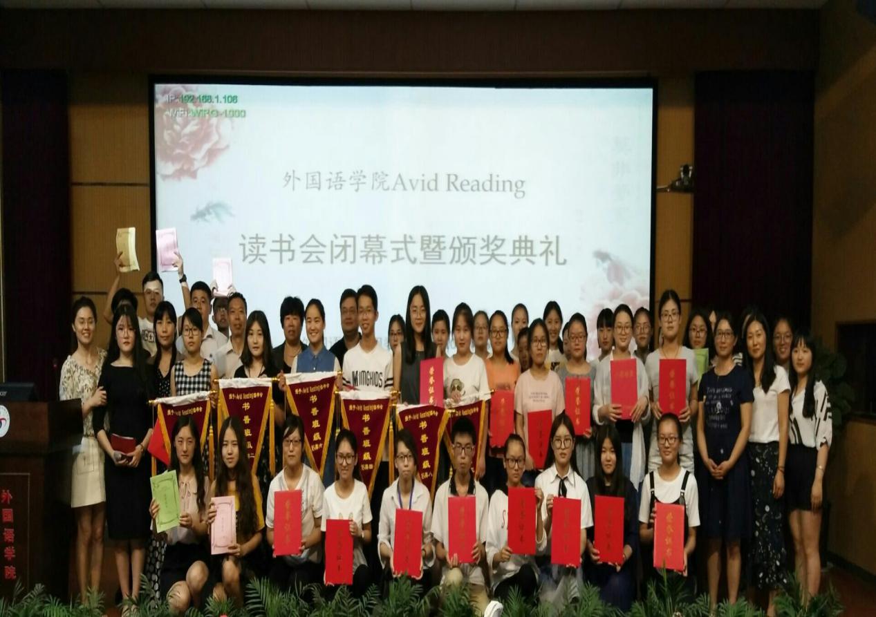 阵阵春风吹满月,浓浓书香漫校园。6月15日晚,外国语学院“Avid Reading”读书会闭幕式在报告厅举行。外国语学院党委书记宋霞、副院长张志强、副院长贾建嵩以及各教研室主任出席颁奖典礼并为获奖选手颁奖。我院辅导员及百余名学生代表共同参加了颁奖典礼。