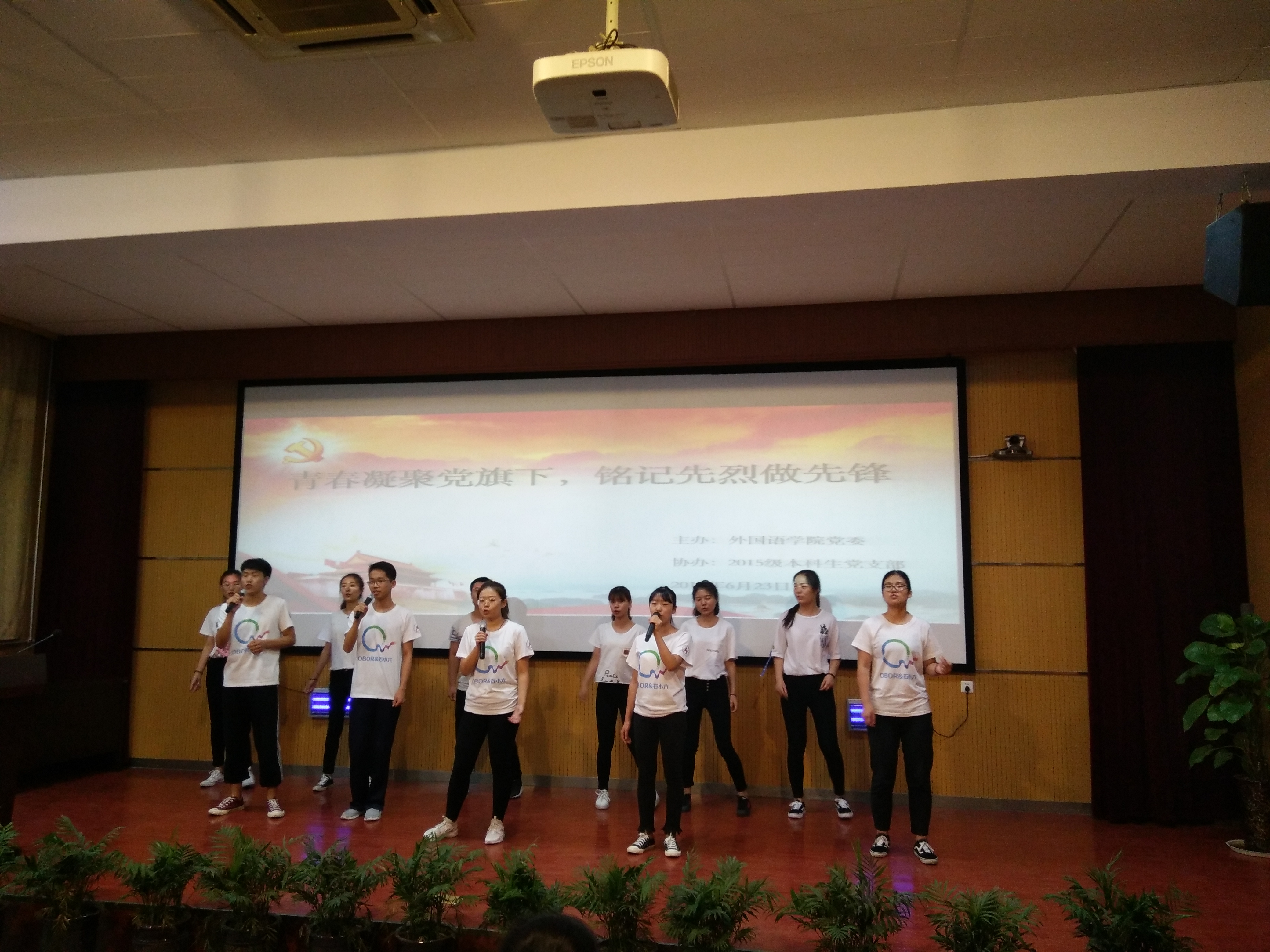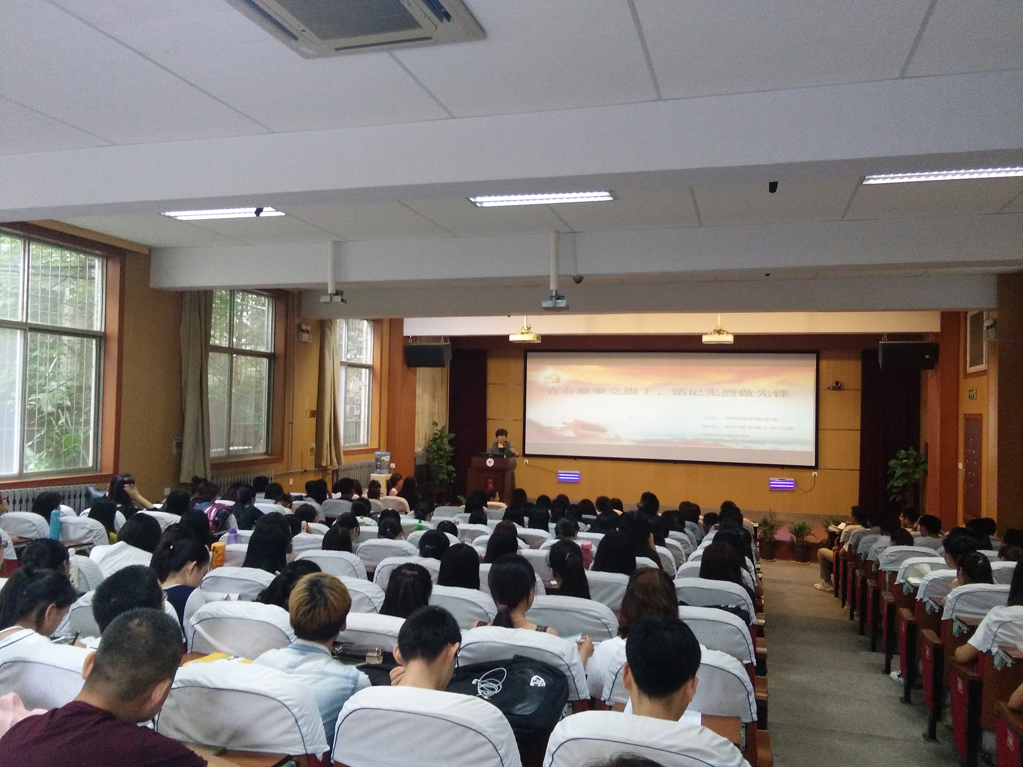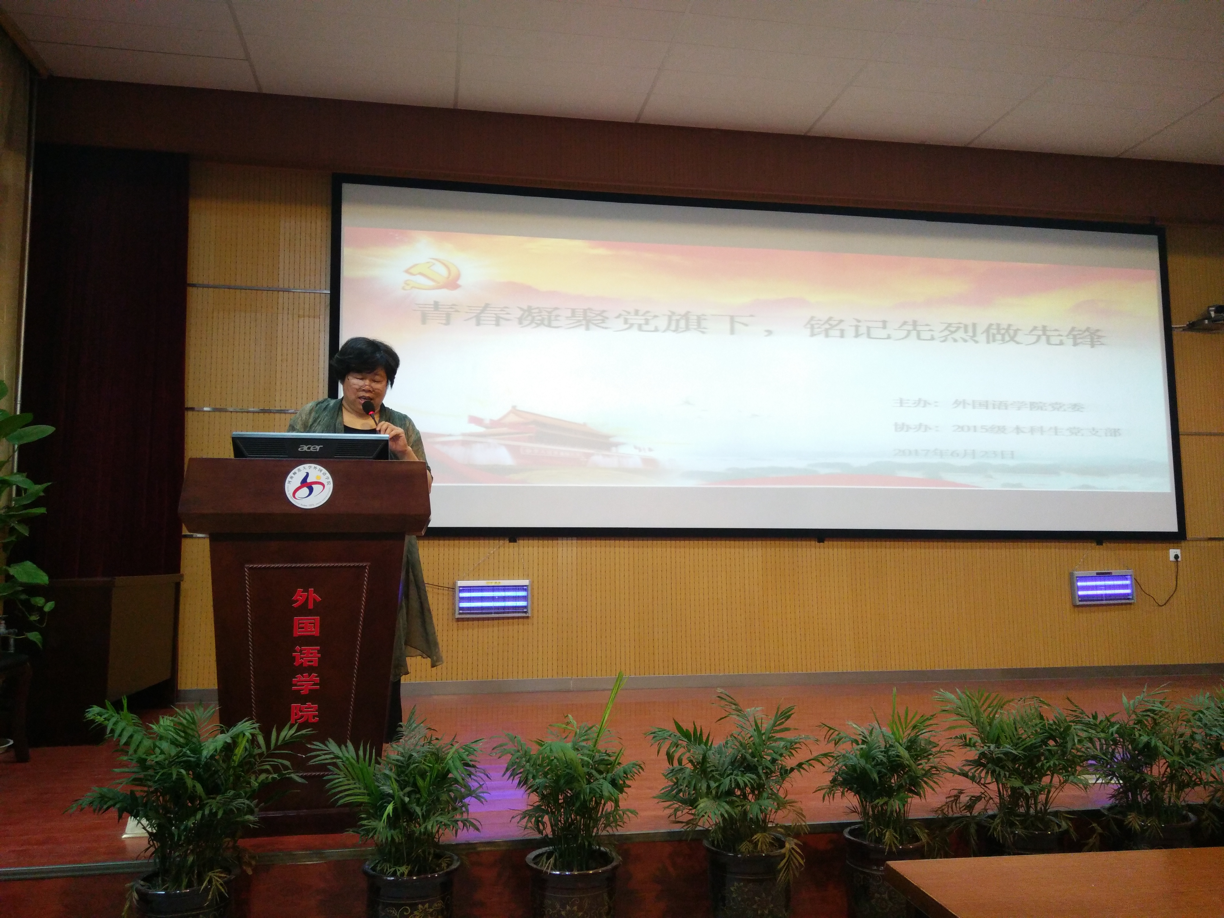 为进一步深化“两学一做”学习教育,净化党性觉悟,献礼“七一”,6月23日下午,外国语学院党委于外国语学院学术报告厅举办以“青春凝聚党旗下,铭记先烈做先锋”为主题的学习教育活动。外国语学院党委书记宋霞、党委办公室主任刘静观、团委书记唐新、各年级辅导员、以及全体党员学生到场进行学习。