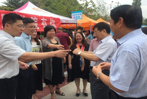 9月9日,为发扬团结精神,提升学院凝聚力,展示学院良好形象,外国语学院组织开展迎新活动,校长常俊标,副校长李雪山视察迎新工作。