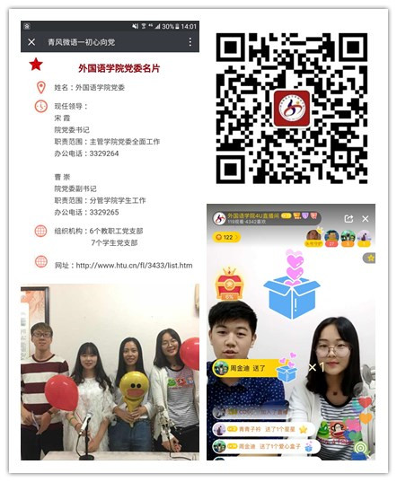 为扎实推进“两学一做”学习教育常态化制度化,营造贴近校园生活、贴近广大师生的党建文化环境,使党建工作更具主动性和亲和力,外国语学院党委积极探索创新,发挥网络新媒体传播速度快、覆盖面广、互动性强的优势,开通了“青风微语初心向党”微信公众号并正式推出特色党建平台“4U”网络直播间。