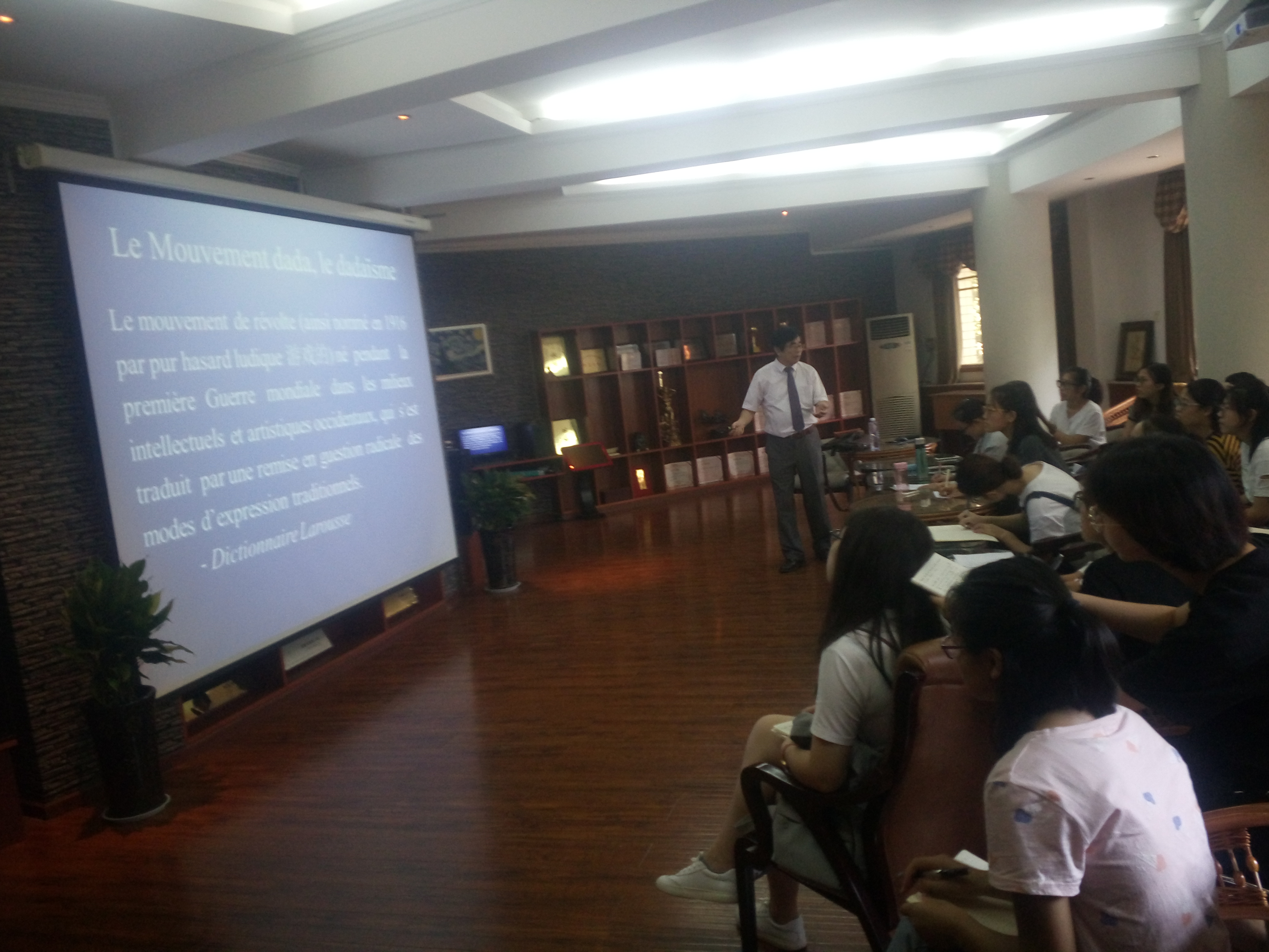 在9月20日上午的讲座中,李志清教授以“荒诞”为主线,用三个小时的时间串讲了包括达达主义、超现实主义、存在主义、新小说以及荒诞派戏剧在内的整个二十世纪文学,内容丰富详实,使在场师生对这一时期的文学有了相对全面的了解。