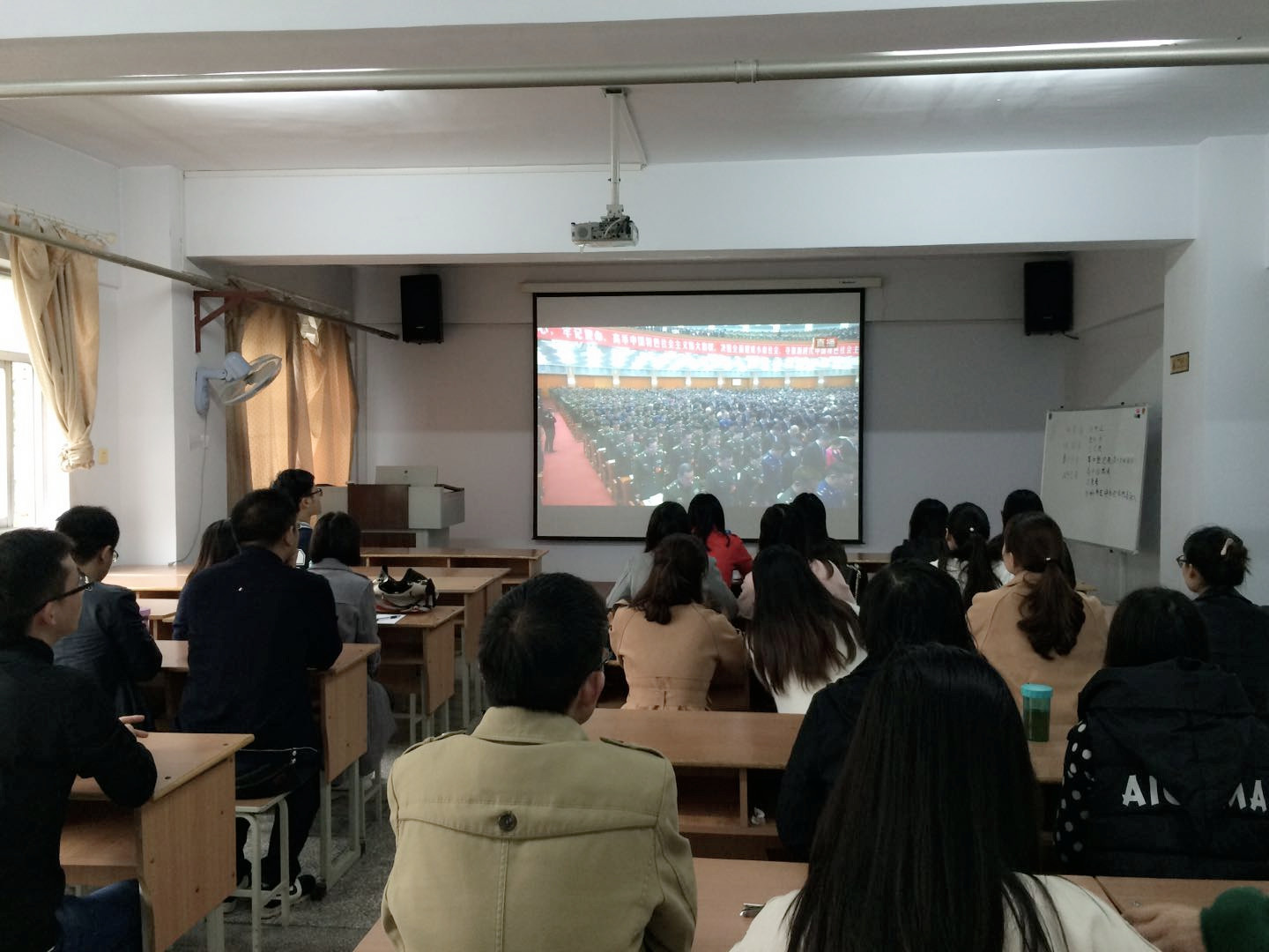 根据校党委宣传部《关于认真组织收听收看党的十九大开幕式和习近平总书记所作的工作报告的通知》精神,我院党委高度重视,积极部署,于18日上午9:00在学院教师学术活动中心组织没课的教职工集体观看党的十九大开幕式,学习习近平总书记所作的工作报告。学院处级干部、支部书记、部分没课的教职工参加了学院集体观看学习活动。与此同时,学生支部组织没课的学生分别在五楼多媒体教室一、三集体观看,第一时间学习领会会议主要精神。