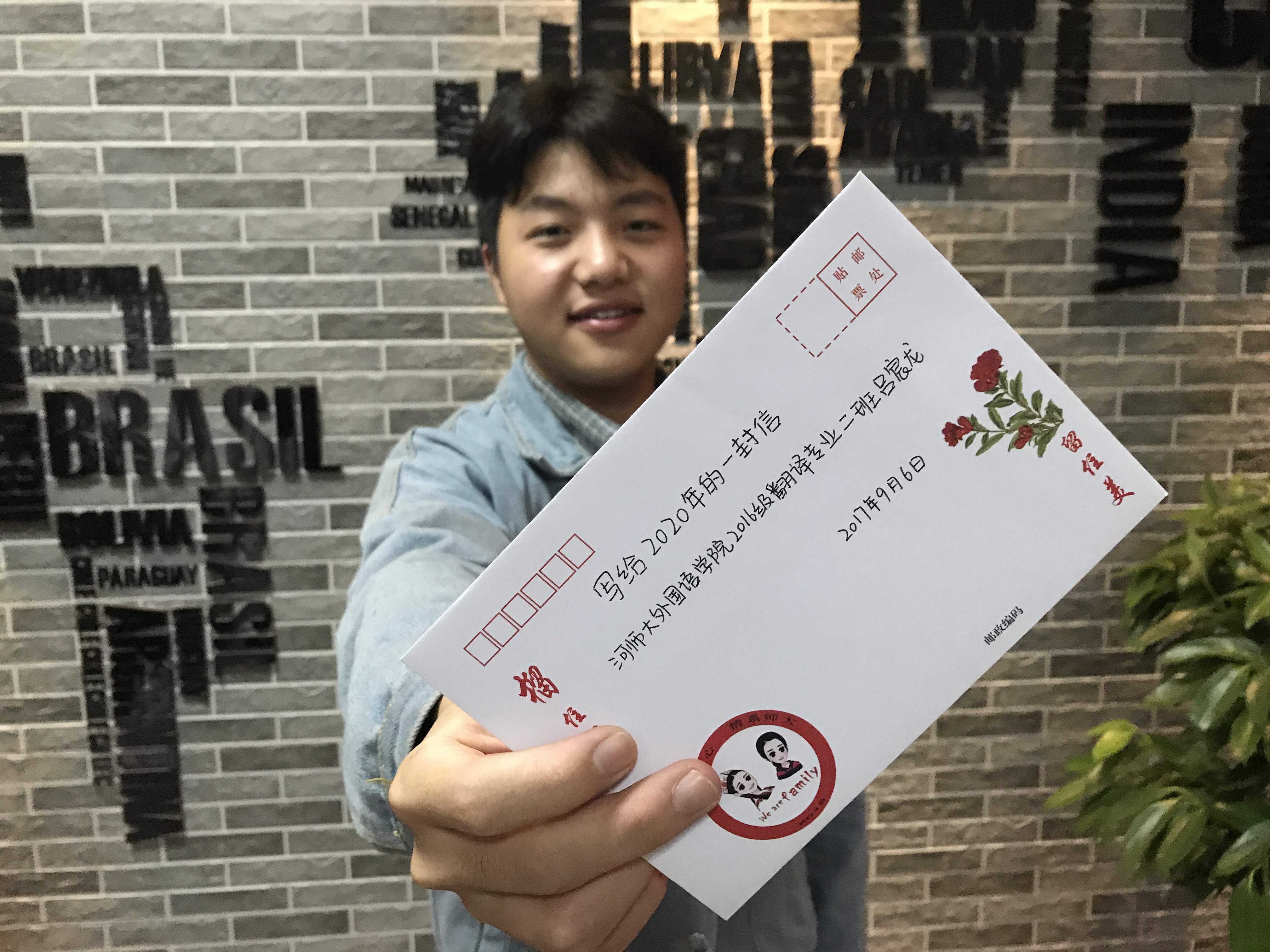 青年有信仰,国家有未来。党的十九大召开之际,外国语学院党委发起主题为“写给2020年的一封信”的书信话未来活动。此次活动由2016级本科党支部承办,活动设计有统一的信封,参与师生亲笔写下心中对祖国母亲的祝福,对自己成才发展的规划,亲手装进信封。看到统一密封好的神圣信封,参与师生油然而生一种自豪感与爱国情,我院2016级黄敬云同学自豪地说:我的国,我愿用一生陪伴,换余生漫漫。新疆籍少数民族学生齐曼古丽·亚森说:“喜迎党的十九大,共圆中国梦,作为学生我们应该贡献自己的一份力量!”