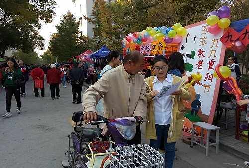 东隅少年早霞美,桑榆未晚夕阳红。10月28日至29日,外国语学院在院团委书记唐新组织带领下,于河师大家属院开展“九九重阳节,浓浓敬老情”慰问老人活动,学院2016和2017级共50名志愿者积极参与、奉献爱心。